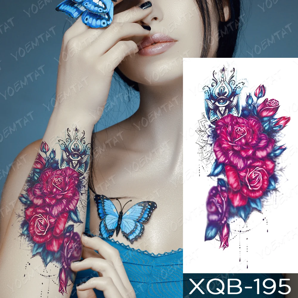 Waterproof Temporary Tattoo Sticker Pink Purple Rose Flowers Flash Tattoos Lace Peony Lotus Body Art Arm Fake Sleeve Tatoo Women Temporary Tattoos Aliexpress